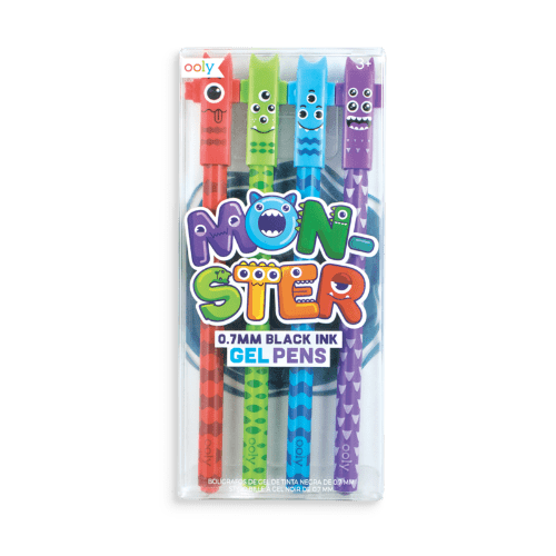 The Monster Gel Pens sport monster face shaped caps that can connect with each other making it easy to keep all 4 pens together. The black gel ink makes writing smooth and fluid especially with the fine point nib.