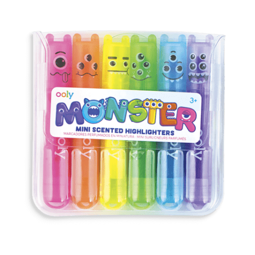 Mini Monsters Scented Neon Highlighters have 6 different fruit scents. And these 6 little neon highlighters couldn’t be any cuter with the little monster faces on each.