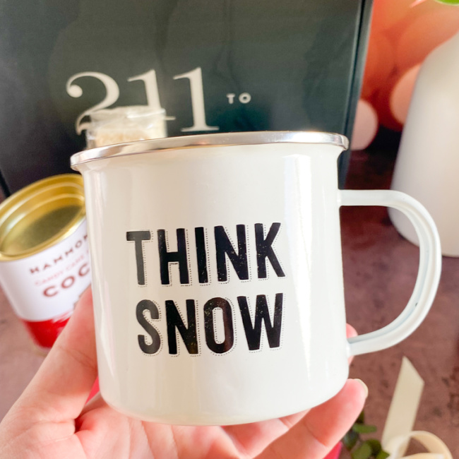 This mug is everything and when all of the goodies inside are gone, they will still have this beautiful mug to cherish. This is a generously sized enamel mug that will have your gift recipient dreaming of endless snowy days!