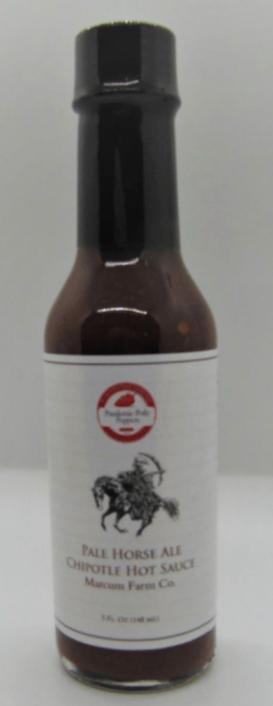 The Pale Horse Ale Chipotle Hot Sauce is Pandemic Polly Peppers mildest hot sauce. This sauce is a mild chipotle with pale ale in the background flavor and the heat level is perfect for nearly every person. This is a delicious hot sauce for wings and more!