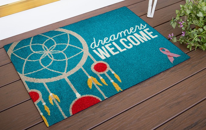 I really like the Bohemian Collection. And I like the whole idea behind the pink ribbon welcome mat.