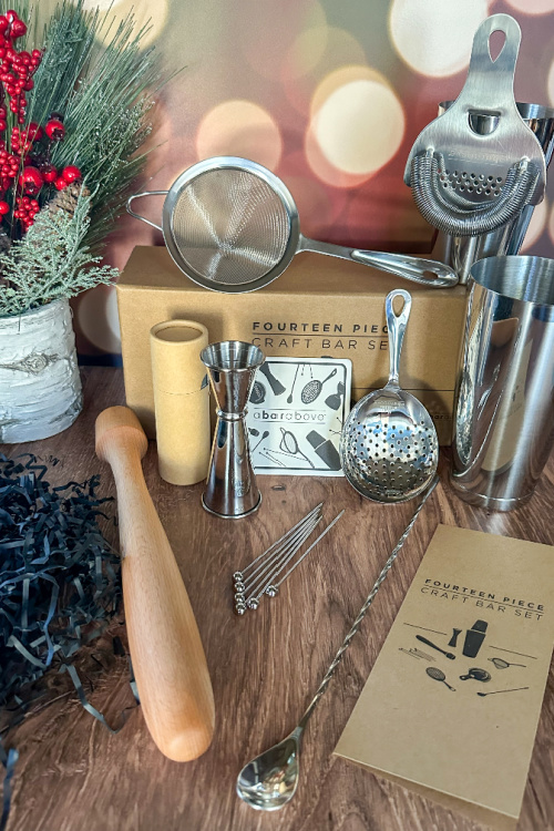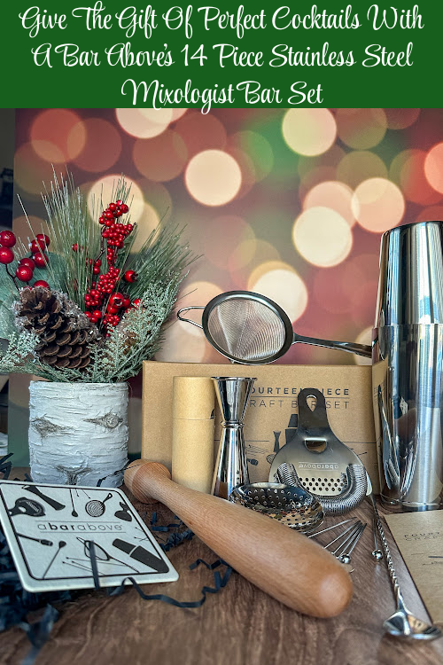 I was lucky enough to receive the A Bar Above 14 Piece Stainless Steel Mixologist Bar Set plus a Gift Voucher for A Bar Above’s Bar Basics Course which I absolutely love! You can literally gift this to anyone on your gift giving list that appreciates delicious craft cocktails and that loves enjoying perfectly crafted cocktails in the convenience of their own home. With the tools available from A Bar Above, you can do just that and literally give the gift of the perfect cocktail! Let’s take a look at the 14 Piece Bar Set I received and some highlights from the Bar Basics Course that A Bar Above offers too. Together they pair as the perfect gift for the Holidays or anytime the year!