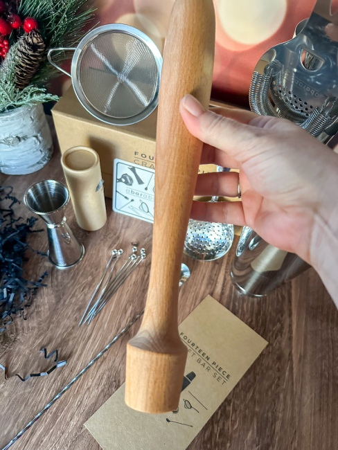 this is such a neat set … love that it has everything needed to make a cocktail.. even the muddler..