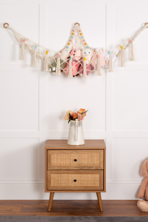 If you are ready to say goodbye to cluttered spaces in your children’s rooms due to the overabundance of stuffed animals…. you need a Cuddinio Macrame Stuffed Animal Hammock. This is a beautiful handmade stuffed animal hammock that will be your go-to-choice for all of your stuffed animal storage needs. Depending on the way that you hang and utilize the toy hammock, you can hold different kinds and sizes of plushies.