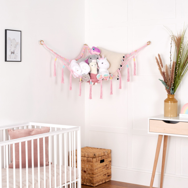 This is a cute hammock. Unfortunately, I don’t get my kids stuffed animals due to allergies. But this is a cute decoration to put them in if you like stuffed animals.