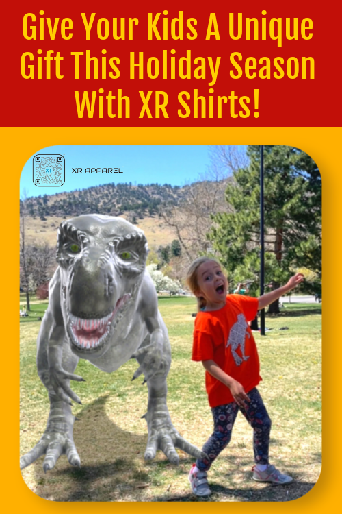 I am excited to share a unique gift with you guys that makes the perfect gift for the kiddos this Holiday Season and even those adult kiddos in your life! I was on the hunt for some cool gift ideas for my niece and stumbled upon XR Apparel and their cool XR Shirts! XR Shirts are the must-have-gift for the kiddos in your life as they come to life using your smartphone camera which is really cool. You simply scan the Xcode pattern on each of their shirts and watch as a T-Rex or Unicorn emerges right out of the shirt!? Say what?! Yes… you read that right and it is so cool plus the best part is that you can even take pictures and videos as you interact with the experience. You can then share those cool, unique and unforgettable experiences with your friends and family this holiday season! No app required!