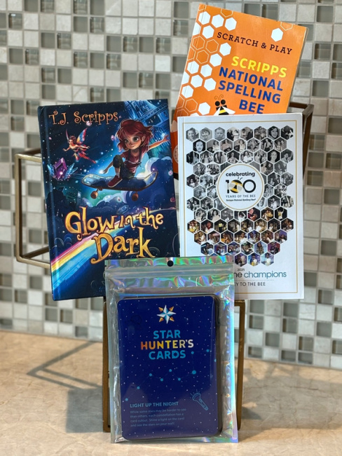 Enter the giveaway below for your chance to win a signed paperback of Glow in the Dark: A Streak of Light! Imagine the thrill of being the one lucky winner who will receive a signed hard copy, a Montessori Toy Interactive Constellation card pack, a Scratch & Play Scripps National Spelling Bee activity book, and the official dictionary of the Scripps National Spelling Bee 2025 “Words of the Champions”! Enter Today & Good Luck!