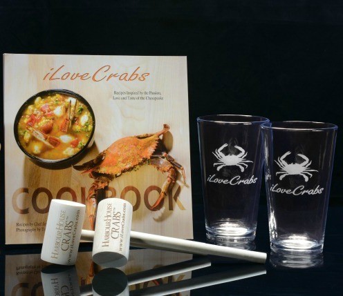 1 Dozen Steamed Blue Crabs (Jumbo 6 ½ to 7 inch point to point ) , 2 Jumbo Lump Crabs Cakes, ½ Pound Steamed Jumbo Gulf Shrimp, 4 Espresso Bean Brownies. This will also include 2 Mallets, 1 Crab Paper, 2 “iLoveCrabs Pint Glasses & 1 iLoveCrabs Cookbook Plus free Shipping Anywhere in the USA. (pictured below)