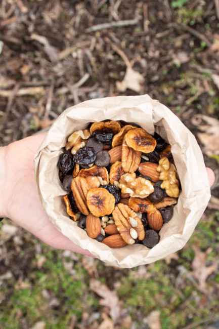 Snacks are also a must-have item for your hiking backpack. Looks to add high-protein, easy to enjoy snacks that can help to fuel you throughout your hike. I love protein bars and KIND bars plus you can include a bag of trail mix, nuts, dried fruit ad anything else you love to snack on.