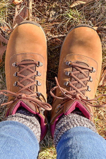 The most important item for me when it comes to hiking is having a good pair of hiking boots. Your hiking boots need to fit properly, comfortably and need to provide you the traction you will need for an array of surfaces…. think super dry to muddy and even rocky and slippery hiking surfaces. I know in The Poconos there are rocks and boulders everywhere and some of the trails I have been on are very rocky and when raining….slippery too. You also want to ensure the hiking boots provide you with proper ankle support, water resistance and all in a lightweight and super comfy boot.