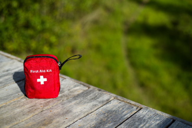 I recommend buying a small-prefilled first-aid kit that contains all of the first-aid kit essentials that one might need. You can also make your own kit….. just make sure to include everything you might need and sunscreen and bug repellent too!