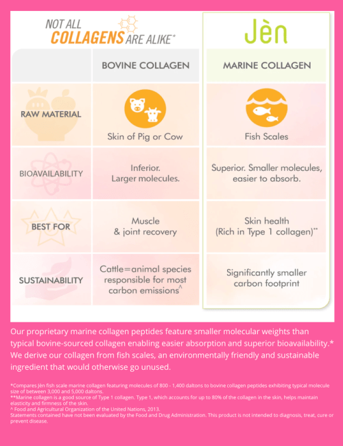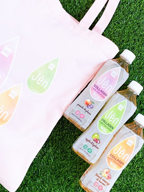 Now… let’s discuss the science so that you understand why these waters are so fabulous. You may be wondering … what is Collagen & why is it so important to take? Well Collagen is the most common protein in the body as it’s present in the skin, tendons, fat and ligaments. The cells in your body that contain healthy levels of collagen will take on a strong and youthful appearance and it’s proven that skin that has healthy levels of collagen is not only more youthful looking but it’s stronger too. And it is never too early or late to start worrying about the aging process as once we turn 30, the collagen production and cell turnover in our bodies starts to slow down and this contributes to the natural aging process which we all are honestly trying to avoid. This is why I am loving Jèn as their waters provide me with the easiest way to enjoy and supplement my collagen intake by just drinking a delicious beverage.