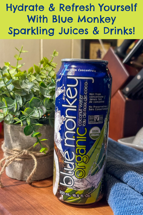 Blue Monkey™ is a locally based, family-owned, and operated beverage and snack company in Canada and the United States. The Company was founded in 2009 by the husband and wife team of Simon and Mary-Jane Ginsberg – the pair behind the successful Ice Age Glacier water brand. Blue Monkey Sparkling Juices & Drinks are sold throughout Canada and the United States and their Coconut and Tropical Collections include a full beverage line of natural, organic, and sparkling beverages which are incredibly delicious. They also have a snack line including coconut chips, organic coconut cream, and organic coconut water. What I love about Blue Monkey is that their coconut products and juices are 100% pure ~ not from concentrate all while being packed at the source and being shelf stable without the use of added preservatives, additives, or sugar PLUS they’re 100% vegan! For these reasons, I knew Blue Monkey was the brand for me and my family’s hydration needs.