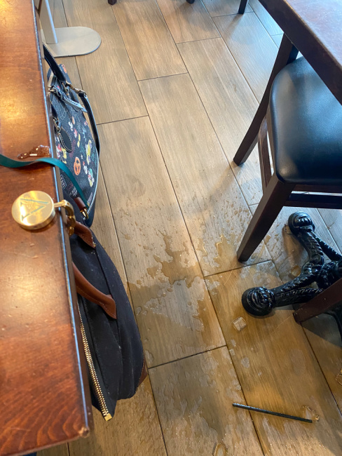 When we were at the restaurant, we realized immediately how lucky we were that we had our bags on the Ivy Alexander Handbag Hooks as our waiter spilled my drink, BUT no worries as our bags stayed safe and were not wet at all because they were no where near the floor. You can see the spill in the picture below.