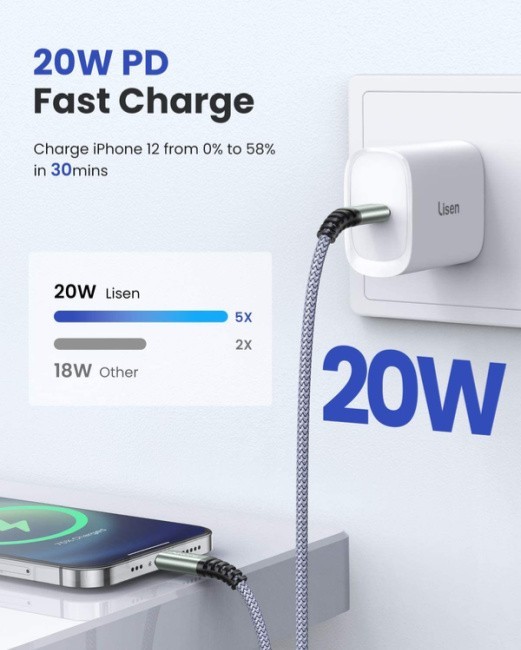 The LISEN 20W USB Fast Charging C Wall Charger is a must have for anyone in need of lightening fast charging of their devices. I love this career as it is so fast and gets me up and running agin in record time. You can literally charge your phone from 0% to 58% in just 30 minutes! It provides 20W Power Delivery and while charging you can also transfer data between 2 devices at super fast speeds. This charger is compatible with 20W, 18W, and 5W PD Fast Charging.