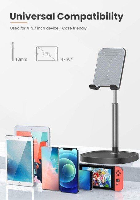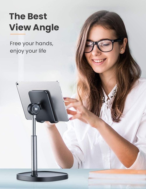 The LISEN Cell Phone stand allows you to free your hands which I love. This cell phone stand holder is an ergonomic design providing you with the best viewing angle. The height can be adjusted as well as the angle between 5°~85°. For bigger size items like my Amazon tablet…. I keep it lower in height and for a phone I can stand it a bit taller. I also have to point out that this stand provides you with a super comfy viewing angle which helps your posture and reduces neck and back strain which is huge for me.