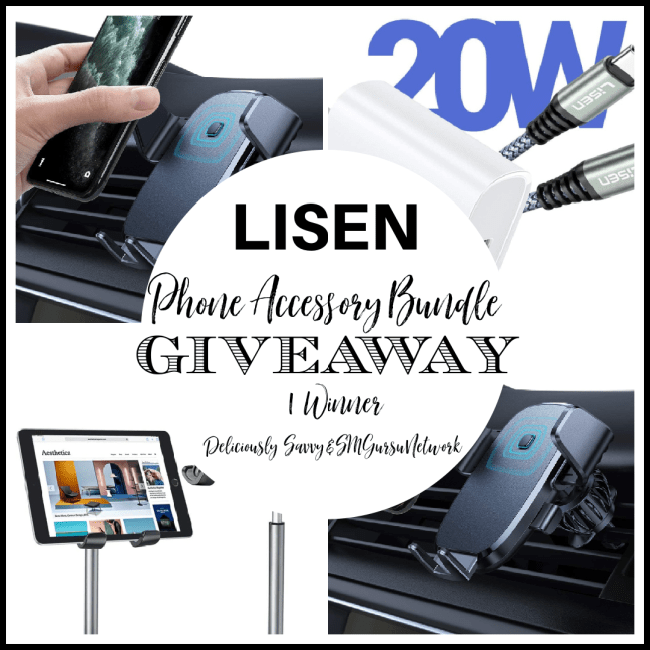 1 Lucky Winners will win a bundle of products from LISEN. A LISEN Phone Holder for the car, the LISEN 20W USB Fast Charging C Wall Charger, and the LISEN Cell Phone Stand! TRV $58