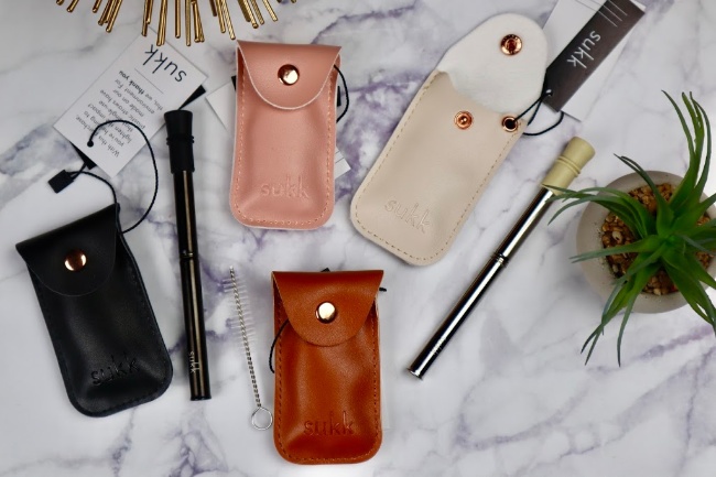 Sukk offers your need for a straw in a sustainable, compact and awesome kind of way and I love these! Sukk Stainless Steel Extendable Drinking Straws are made with food grade stainless steel and are oxidation free, dishwasher safe, virtually unbreakable, and retractable and extendable to fit any size glass or cup. Each Sukk Straw comes with a Vegan Leather Carry Case and all Sukk Straw orders are shipped in 100% compostable shipping bags as they care about sweet Mother Earth!