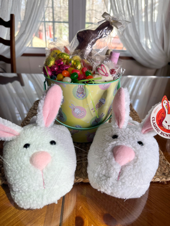 These bunny slippers are so cute and soft, I bet my grand kids would love something like this in their basket!