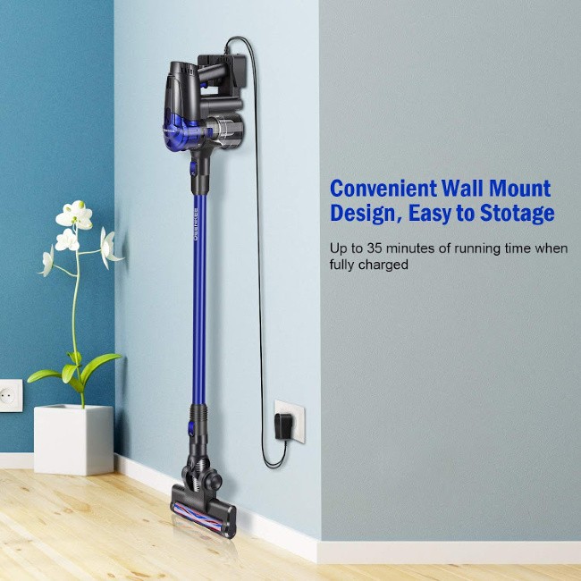 I love that the DEENKEE Cordless Vacuum comes with a wall mount so that you have easy storage all while recharging the unit and it provides up to 35 minutes of clean time when fully charged which allows me to get all of my cleaning done in one charge. You can also upgrade the runtime with this unit which is cool and you can also rejuvenate the unit by simply replacing the battery when and if needed over time.