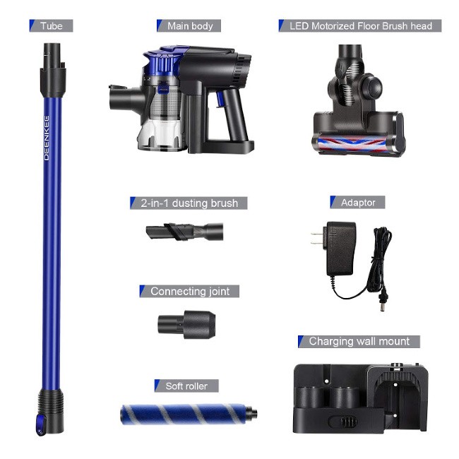 The cordless design of the DEENKEE Cordless Vacuum Cleaner is everything to me as it makes it super easy to carry the unit from room to room for any and all of my clean ups. I also love the strong suction as this unit provides a 17,000Pa suction and 200W of power all while being amazingly quiet. The unit steers beautifully around furniture, tight turns and spaces and I am loving the LED Indicator Lights as they provide just enough light for me to see under the bed and furniture when cleaning. The adjustable suction speeds are perfect for all floor types including hard wood, tile, linoleum, carpet and more.