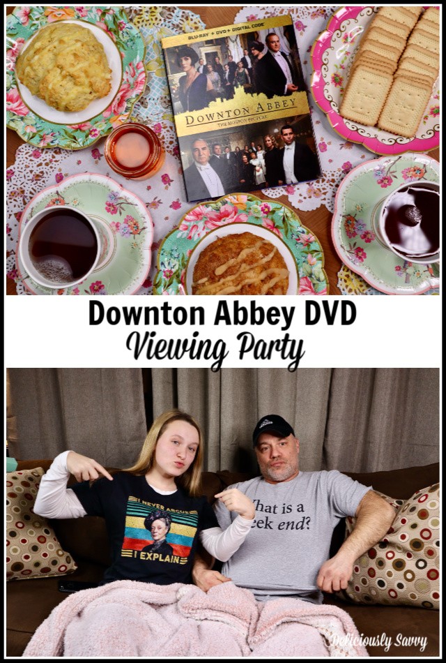 It is no secret to anyone that knows me that have been a huge fan of Downton Abbey for quite sometime. There is just something fabulous about watching the Crowely’s in all of their glory, especially my all time favorite character, Violet Crowley, the Dowager Countess of Grantham. In anticipation of the movies release I recently rewatched all six seasons as it has been some time since I have seen them. I also hate to admit that I did not have the chance to see Downton Abbey while on the big screen which is why I was super excited to throw a simple but fun Downton Abbey DVD viewing party with my husband and our oldest daughter. We kept it simple with some of our favorite goodies all while wearing t-shirts sporting our favorite characters and quotes.