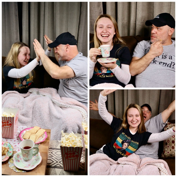 It was lots of fu….simple as we had family that was coming but they had an emergency and did not make it so we had fun goofing and watching 🙂 Great movie too and love the show 🙂