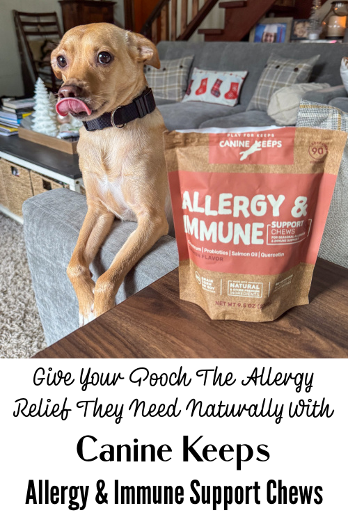 Do you have a furry companion that is constantly itching, scratching and/or paw licking?! Does your pooch happen to suffer from allergies and immune issues such as excessive shedding, red inflamed and infected skin issues, and/or chronic ear infections? Well if you visit Deliciously Savvy often then you know that I adopted my fur baby Jax about a year and a half ago and he has an issue with paw licking and some excessive scratching and shedding too. That’s why when Canine Keeps reached out to me about giving their Allergy & Immune Support Chews a try, I jumped at the chance. Anyone that knows me knows that I am a huge fan of all natural health and wellness remedies for any ailments that my family and I may have and that for sure includes my beloved furry family members too. I have to tell you that these Allergy & Immune Support Chews from Canine Keeps are everything. Not only do they work but my dog absolutely loves them and eats them as if they are a treat… which speaks volumes about these amazing chews. Let’s take a look at the reasons I am loving Canine Keeps Allergy & Immune Support Chews and why they will be a staple in my dogs health and wellness routine!