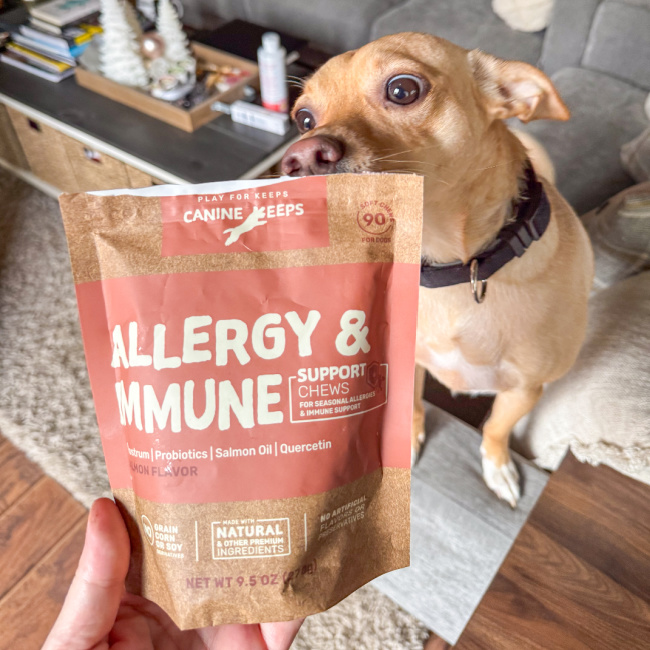I love that Canine Keeps Allergy & Immune Support Chews are formulated for the most sensitive of stomachs without compromising the allergy relief that they provide.