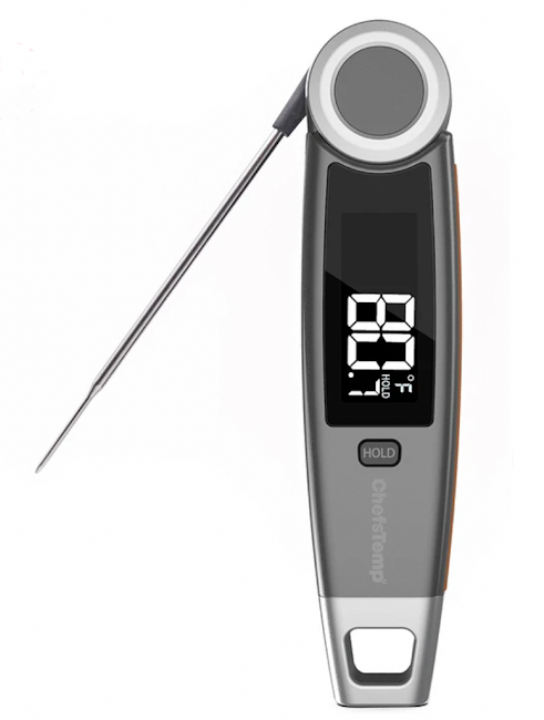 1) The ChefsTemp Finaltouch X10 meat thermometer is amazingly fast and accurate. The unit uses top-of-the-line thermocouple technology to give pinpoint temperature readings as soon as you put the probe into the piece of meat or seafood you are cooking. It provides ±0.7F accuracy and 1-3 seconds readout times which is lightning fast!