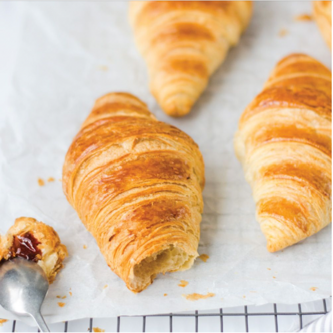 These are heavenly! Pastries lovers will go wild for these delicious ious French Butter Croissants and they are ready to bake in the oven with no defrosting needed! The best part… they are GMO-Free too and only take a few minutes to bake up. Add with a bit if bitter and jam or make a delicious Croissant sandwich with one.