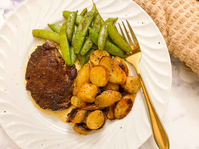 Well, I said the Chimichurri Chicken was my favorite but this one as amazing too…. honestly every meal in this kit was delicious and such a nice change to my traditional boring dinners. This delicious dish showcases how yummy simple ingredients are when they are prepared perfectly. You have a juicy sirloin steak, roasted potatoes, and sauteed sugar snap peas that are drizzled with a creamy bearnaise sauce that makes this a steakhouse-quality meal made easily at home. Hands down my husband and my daughter’s favorite meal but I love love loved them all!