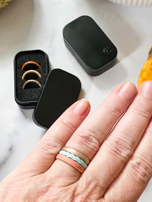 I received two sets of stackable rings from Groove Life…. the Gold Coast Stackable Ring Set and the Mirage Stackable Ring Set. I tend to choose neutral colors that will go with anything and both of these ring sets did not disappoint. Groove Life carries lots of color and style combinations so that there is the perfect set for anyone on your gift giving list and because they are beautifully packaged in there Groove Life tins they are perfect for gifting. The tins also make the perfect storage tin to keep the rings in when you are not wearing them and these fabulous silicone rings provide the ultimate in comfort and style all while being safe to wear when out and about.