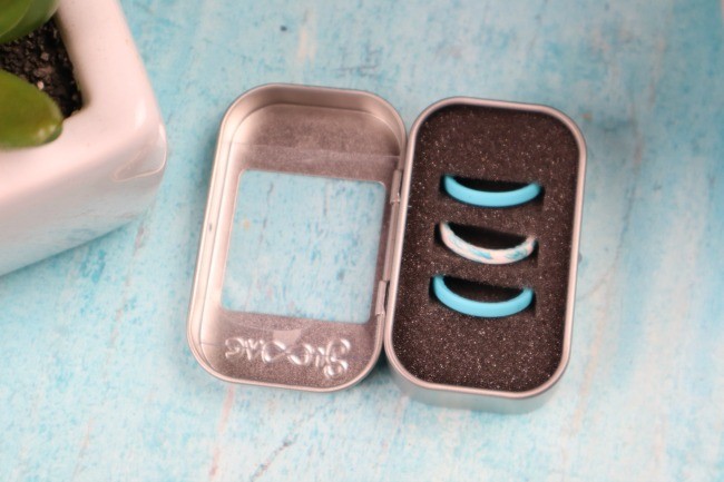 Another Groove Silicone Ring that I fell in love with is the Groove Women’s Stackable Silicone Set in Air Feather which is so fun and fabulous! This is A fresh teal color that is contrasted perfectly with the white feather design ring in the center, while Groove’s patented, breathable design keeps you comfortable.