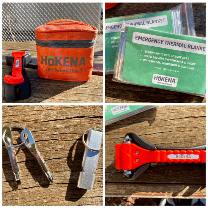 The HOKENA LED Roadside Warning Car Safety Flare Kit comes with everything you need to be prepared for an emergency event. You will receive a high quality storage bag with with a handy zippered pocket, 3 LED Road Flares with a lighting mode memory feature and non-scratching powerful magnetic back, battery replacement tools, 2 emergency thermal blankets, an emergency whistle and a 2 in 1 glass window breaker and seat belt cutter escape tool. Seriously…. I could not believe all that I received in this kit as I thought the price was amazing just for the 3 pack of LED Road Flares. It is an amazing value and honestly…this is a wonderful gift for everyone on my gift giving list as everyone can use this safety kit.