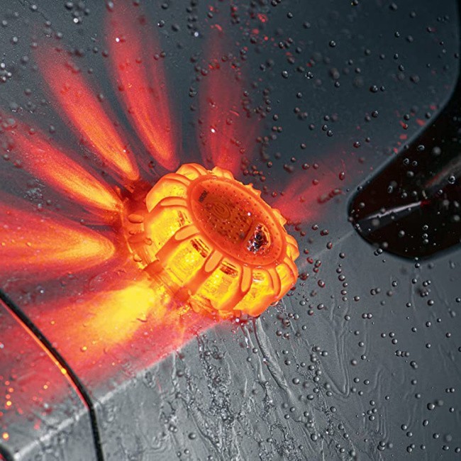 The HOKENA LED Road Flares are amazing! They are waterproof, crushproof and magnetic which I love and the magnetic backs will not damage your vehicles paint job. These are safety flares that are made to last and you can leave them out in the pouring rain or run over them with your car…and there is no damage PLUS the industrial strength rare-earth magnets will keep your roadside safety discs secured to the side of your truck or RV if you choose to use them that way. You will also enjoy quick and easy battery changes with the LED road flares from HOKENA as their emergency LED road flare kit includes keychain screwdriver tools and detailed instructions for simply battery changes PLUS they come preinstalled with AAA batteries so that they are ready to use from day one.