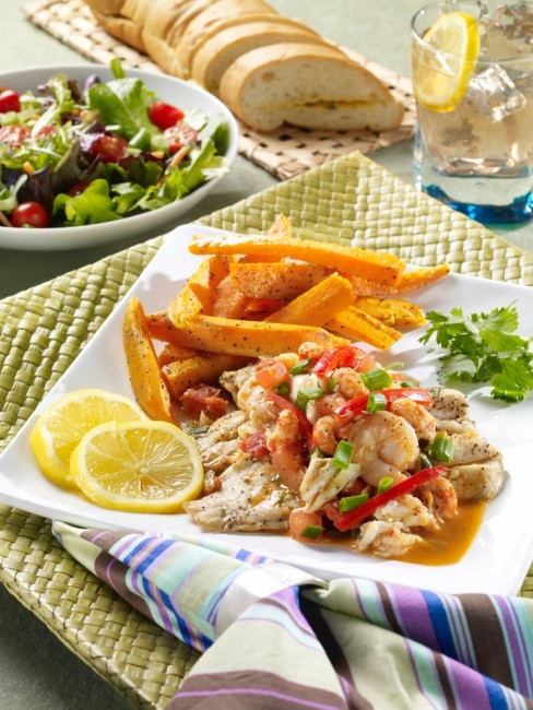 Holly Clegg’s buddy, Don, keeps her spoiled with his fresh fish and her photographer, David, gave her the scoop on his divine Carlysle sauce. The fish is wonderful alone with the lemon garlic sauce, but topped with the Carlysle sauce, is about as good as it gets!