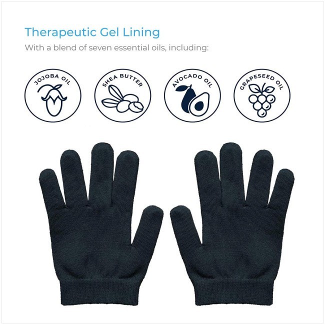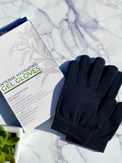 NatraCure’s Intense Hydrating Gel Gloves lock in moisture with a non-breathable, half-coated gel lining that steeps your hands in nourishing goodness. You simply slip them on like you do any pair of gloves and wear them around the house or you can wear them like I do…. when I am sleeping. You will wake up to softer and smoother skin in no time.