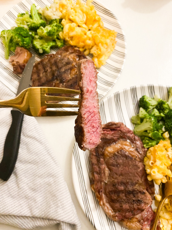 Rastelli’s Ribeyes look delicious right? I sous vide these steaks and then just seared them in a cast iron grill pan real quick after seasoning them and they were absolutely delicious! I ate every bite and my entire family raved about how delicious and flavorful they were. This is for sure due to the fact that Rastelli’s Ribeyes are wet aged for 21 days, and then hand-trimmed and perfectly portioned to provide the perfect steak for any meal you want to whip up.