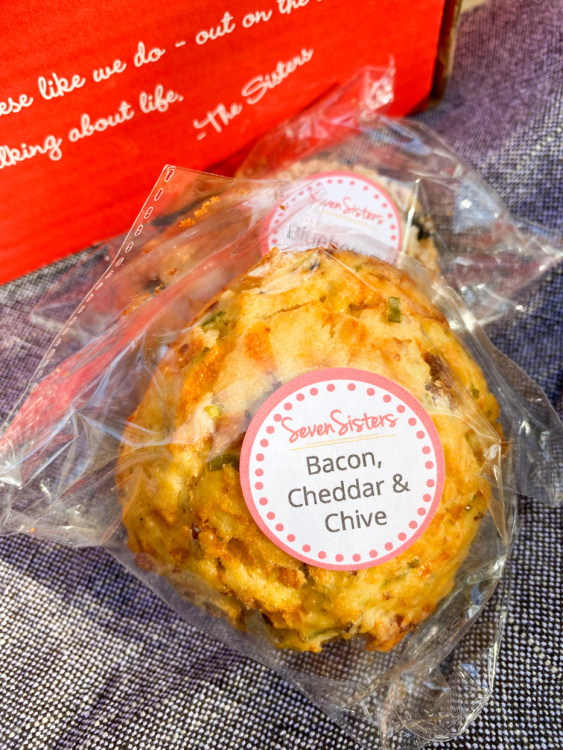A bit about Seven Sisters Scones and how they began…. Founded in Johns Creek, Georgia, Seven Sisters Scones is a labor of love for Hala Yassine and her sisters (yes, there are seven sisters – and two brothers). Hala is a professional chef who baked her first scone from a box mix and was decidedly unimpressed. Leaning on years of culinary experience, she baked her own superior version. It was a hit with the family, and soon new flavors were being batted around. Caramel apple? Sure. Chocolate? Of course. How about some savory options, like bacon cheddar? You bet. They were all hits and soon, the idea to turn all this scone baking into a business came up. Hala began with selling to farmers markets in Georgia, but that quickly led to a need for a dedicated store. Seven Sisters Scones was born and they now offer full-sized scones, the miniature Sconies™, breakfast and lunch Sconewhiches™, and a take on biscotti called Bisconies™. When you are in Georgia you can visit the bakery in person and enjoy soups, salads and a variety of specialty items and if you are not in Georgia you can order online and have them delivered to your door… fresh and delicious!