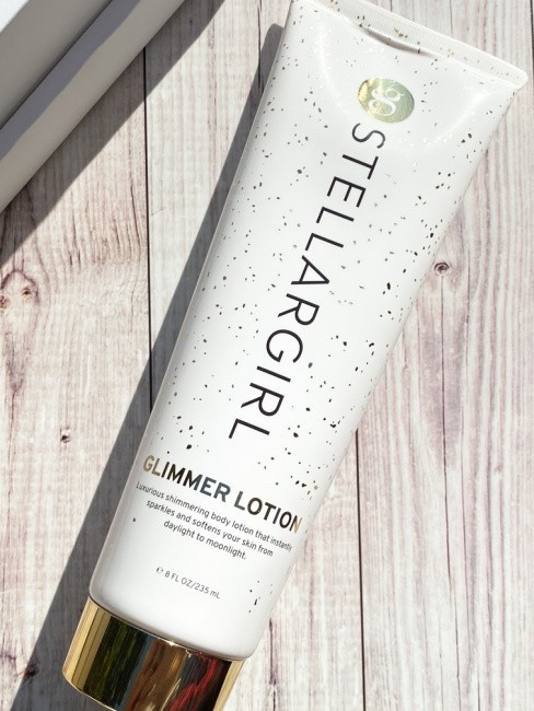 The STELLARGIRL Glimmer Lotion is their signature lotion that provides a sparkling “Stellarbration” for your skin! It is the perfect combination of a light shimmer and golden micro-pave glitter that will have you smiling and sparkling all day long. This is a fabulous and luxurious lotion that is perfect to use before the beach, an adventure, a special occasion or anywhere that you want to leave a subtle sparkle behind.