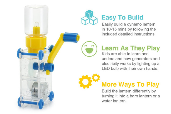 The Dynamo Lantern and GEO Robot Car are easy to build all while being educational assembly toys for he kids. There is no need for any tools or screws and kids can easily build either toy within 10 to 15 minutes following the easy to follow instructions. This is a fun toy for both the parent and child to work on together as well which makes it a great bonding project as well.