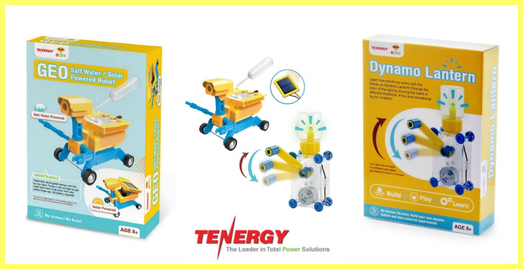 So what do you think of the Tenergy GEO Salt Water/Solar Powered Robot & the Dynamo Lantern? Do you know someone that will love this bundle set? They are a fabulous gift for anytime of the year or simply “just because”. Check them out for yourself and get your kids playing and learning all in one!