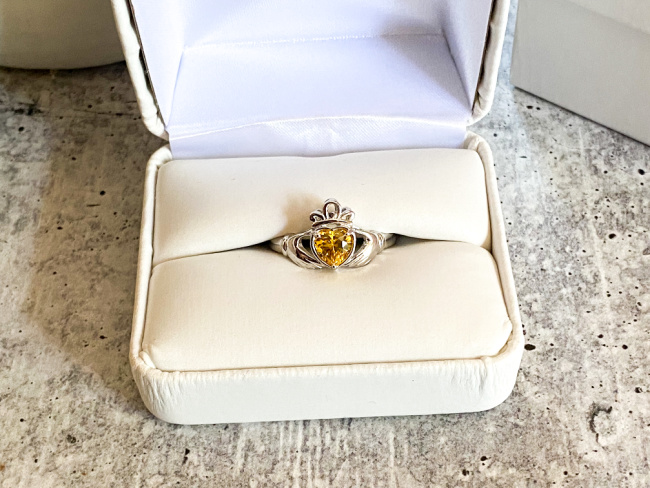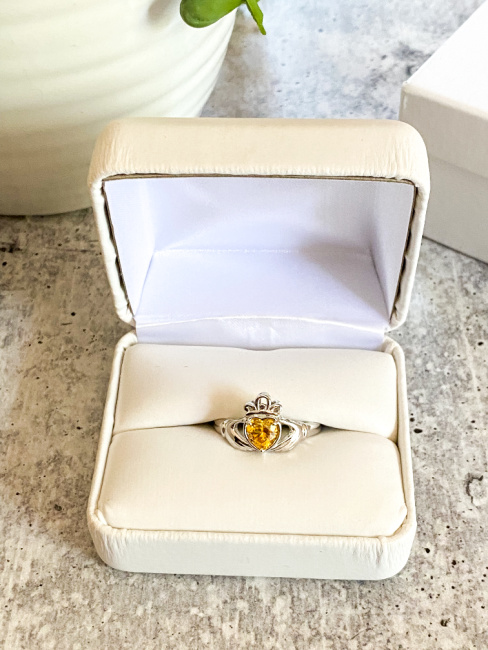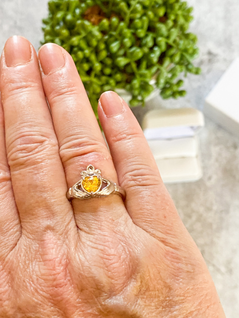Claddagh Ring November Birthstone is Yellow Topaz.