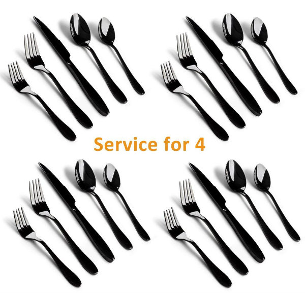 My Savvy Review of the E-far 20 Piece Black Stainless Steel Flatware Utensil Set #StylishDiningUtensils @SMGurusNetwork