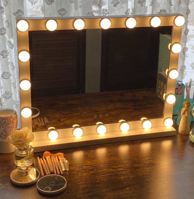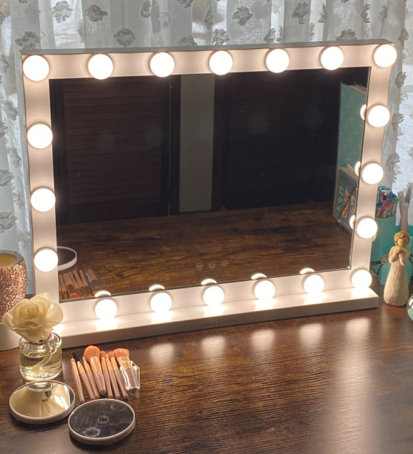 The Ella Bella Vanity Mirror also comes with magnification mirrors that can suction cup to the mirror when you need them plus a handy set of makeup brushes! The mirrors are perfect for plucking your eyebrows and so much more and you get two of them…a 5X magnification and a 10X magnification mirror. The soft light and illumination of the Ella Bella makeup mirror with lights enables you to see all of the soft contours of your face which makes it easier to apply makeup creams, lotions and more.The unique style ands beauty of the Ella Bella Vanity Mirror makes it perfect for anyone that loves to do makeup. It is also perfect as the various lighting modes ensure that your look is perfect for indoor and outdoor looks as it provides a ‘ natural light’ for the makeup application.