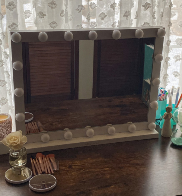 I absolutely love this vanity mirror. It is gorgeous and I like that you’d be able to see your makeup clearly with all of those lights.