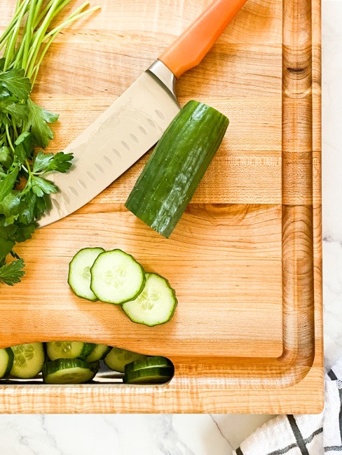 Sounds like the perfect cutting board. All details are listed like using sustainable wood. Good job. Your picture with those lovely cucumbers is making me so hungry. They are my favorite food! Great review!