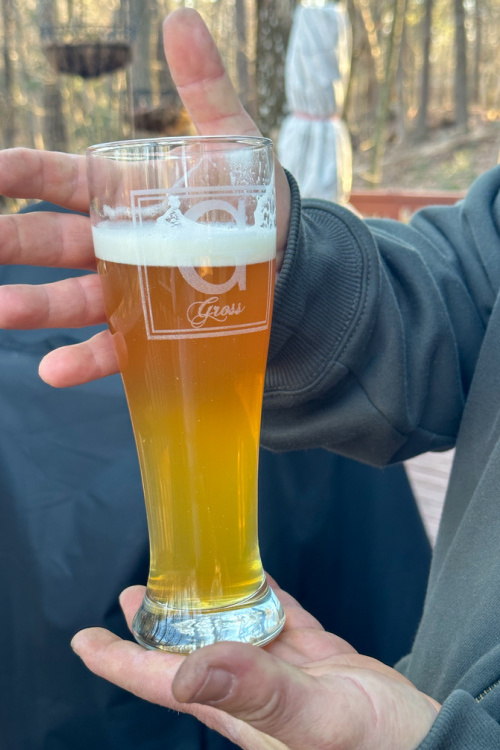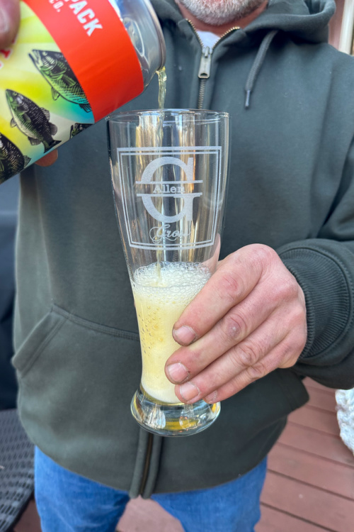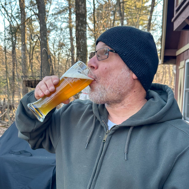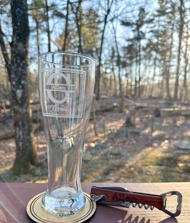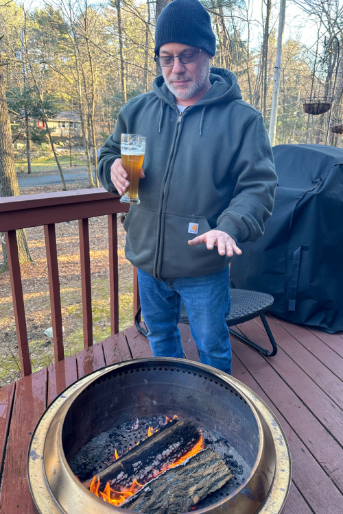 My husband got home from work and just wanted to enjoy a delicious IPA Beer and I gave him his glass to enjoy with and he loved it. You can see him by his slow stove enjoying the brew and also showing off his personalized pilsner glass.
