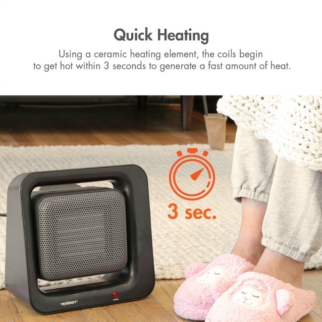 The Tenergy Personal Heater uses a ceramic heating element and fan-forced heater which begins to get hot within 3 seconds to generate a fast amount of heat quickly while reaching your desired temperature. I also love that this unit is backed with safety as this unit has an automatic shut off feature that prevents overheating once the electric fan heater senses an internal temperature of 179.6°F. This is super important to me and it is truly the feature that is most important to me when choosing a personal heater of any kind.
